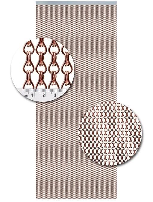 Dit zijn kwalitatief gezien echt goede vliegengordijnen. Ze zijn supersterk! De schakels zijn gemaakt van geanodiseerde draad en zijn kleur-echt. In één meter (breed) zitten 78 banen normale schakels. De groote van deze schakel is 24 mm lang en 12 mm breed. Het geheel hangt aan een zilverkleurige rail.