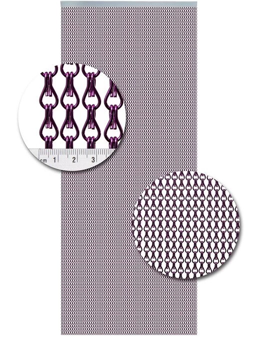 Dit zijn kwalitatief gezien echt goede vliegengordijnen. Ze zijn supersterk! De schakels zijn gemaakt van geanodiseerde draad en zijn kleur-echt. In één meter (breed) zitten 78 banen normale schakels. De groote van deze schakel is 24 mm lang en 12 mm breed. Het geheel hangt aan een zilverkleurige rail.