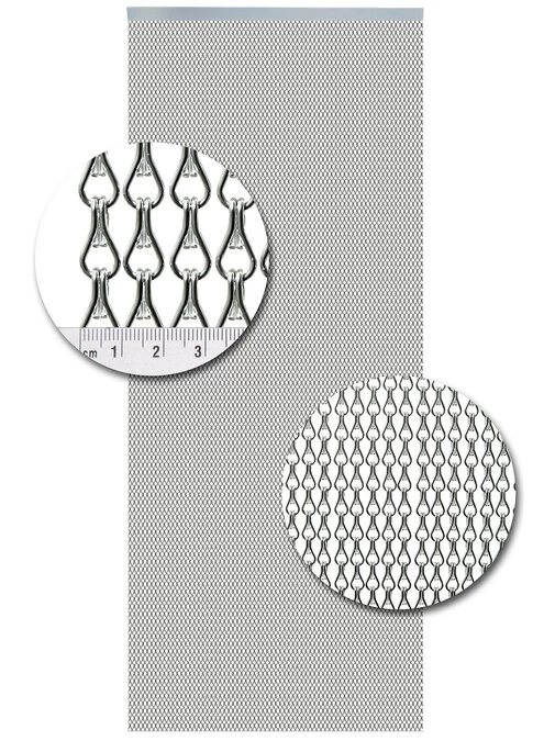 Dit zijn kwalitatief gezien echt goede vliegengordijnen. Ze zijn supersterk! De schakels zijn gemaakt van geanodiseerde draad en zijn kleur-echt. In één meter (breed) zitten 78 banen normale schakels. De groote van deze schakel is 24 mm lang en 12 mm breed. Het geheel hangt aan een zilverkleurige rail.