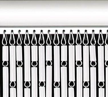 Dit vliegengordijn is geschikt voor de meeste nieuwbouwhuizen. Het gordijn heeft een breedte van 100cm en een hoogte van 240cm. De hulzen van dit deurgordijn zijn zo sterk, dat ze zelfs niet breken als ze tussen de deur komen. De geregen metalen haken in de hulzen geven het gordijn een ijzersterke kwaliteit. De hulzen verkleuren niet in de zon! De gegalvaniseerde haakjes zijn roestvrij, waardoor het ook mogelijk is om dit vliegengordijn aan de buitenkant van je deur op te hangen.