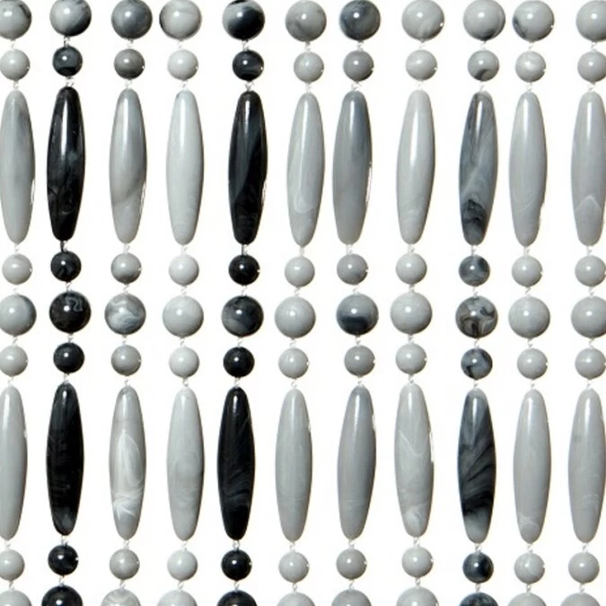 Dit zijn kwalitatief gezien echt goede kralengordijnen. De draadjes die gebruikt zijn, zijn gemaakt van nylon en dus extra sterk. De kunststof kralen zijn stuk voor stuk aan het nylon draad gesmolten. Het geheel hangt aan een witte cassette. Het is een vrij dicht kralengordijn waarbij er op circa elke centimeter een streng hangt. Om als voorbeeld even een vliegengordijn met een breedte van 90cm te noemen; hier hangen circa 90 strengen aan.