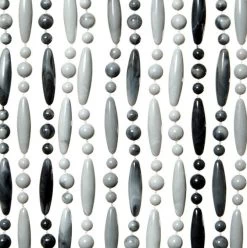 Dit zijn kwalitatief gezien echt goede kralengordijnen. De draadjes die gebruikt zijn, zijn gemaakt van nylon en dus extra sterk. De kunststof kralen zijn stuk voor stuk aan het nylon draad gesmolten. Het geheel hangt aan een witte cassette. Het is een vrij dicht kralengordijn waarbij er op circa elke centimeter een streng hangt. Om als voorbeeld even een vliegengordijn met een breedte van 90cm te noemen; hier hangen circa 90 strengen aan.