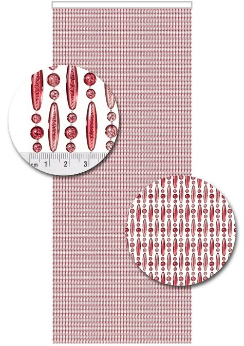 Dit zijn kwalitatief gezien echt goede kralengordijnen. De draadjes die gebruikt zijn, zijn gemaakt van nylon en dus extra sterk. De kunststof kralen zijn stuk voor stuk aan het nylon draad gesmolten. Het geheel hangt aan een witte cassette. Het is een vrij dicht kralengordijn waarbij er op circa elke centimeter een streng hangt. Om als voorbeeld even een vliegengordijn met een breedte van 90cm te noemen; hier hangen circa 90 strengen aan.