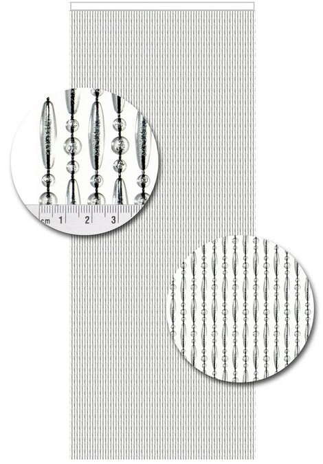 Dit zijn kwalitatief gezien echt goede kralengordijnen. De draadjes die gebruikt zijn, zijn gemaakt van nylon en dus extra sterk. De kunststof kralen zijn stuk voor stuk aan het nylon draad gesmolten. Het geheel hangt aan een witte cassette. Het is een vrij dicht kralengordijn waarbij er op circa elke centimeter een streng hangt. Om als voorbeeld even een vliegengordijn met een breedte van 90cm te noemen; hier hangen circa 90 strengen aan.