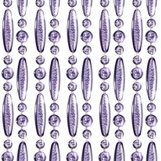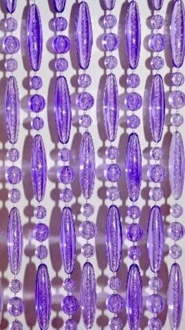 Luxe kralengordijn gemaakt van nylon draad. De kunststof kralen zijn stuk voor stuk aan het nylon draad gesmolten. Het geheel hangt aan een kunststof witte cassette.