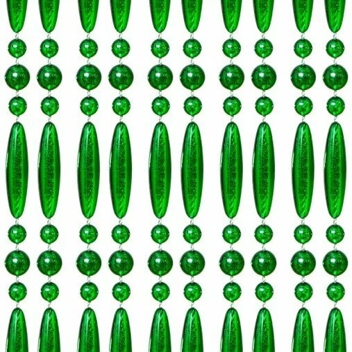 Luxe kralengordijn gemaakt van nylon draad. De kunststof kralen zijn stuk voor stuk aan het nylon draad gesmolten. Het geheel hangt aan een kunststof witte cassette.