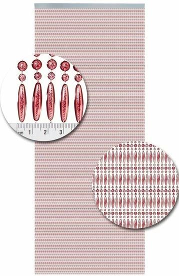 Luxe kralengordijn gemaakt van nylon draad. De kunststof kralen zijn stuk voor stuk aan het nylon draad gesmolten. Het geheel hangt aan een kunststof witte cassette.
