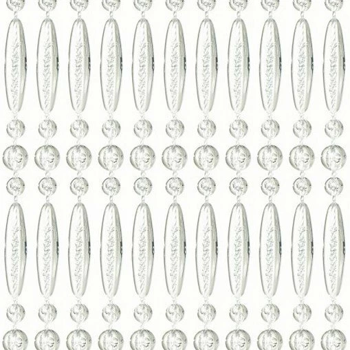Luxe kralengordijn gemaakt van nylon draad. De kunststof kralen zijn stuk voor stuk aan het nylon draad gesmolten. Het geheel hangt aan een kunststof witte cassette.