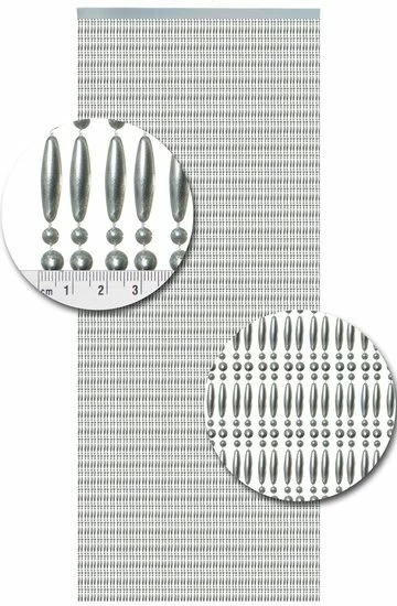 Luxe kralengordijn gemaakt van nylon draad. De kunststof kralen zijn stuk voor stuk aan het nylon draad gesmolten. Het geheel hangt aan een kunststof witte cassette.