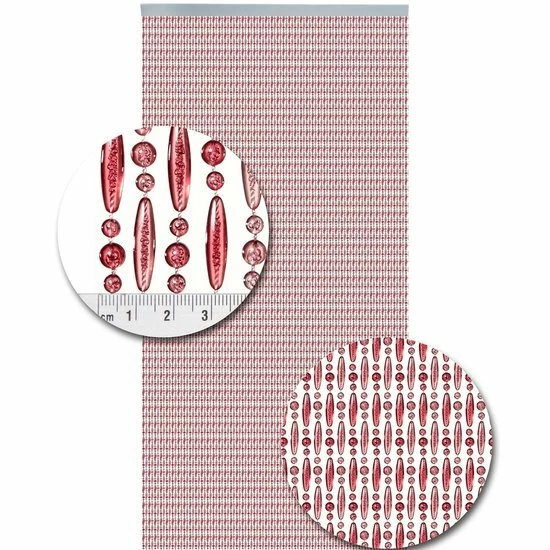 Luxe kralengordijn gemaakt van nylon draad. De kunststof kralen zijn stuk voor stuk aan het nylon draad gesmolten. Het geheel hangt aan een kunststof witte cassette.
