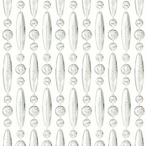 Luxe kralengordijn gemaakt van nylon draad. De kunststof kralen zijn stuk voor stuk aan het nylon draad gesmolten. Het geheel hangt aan een kunststof witte cassette.