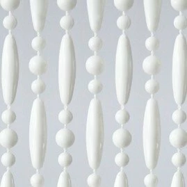 Luxe kralengordijn gemaakt van nylon draad. De kunststof kralen zijn stuk voor stuk aan het nylon draad gesmolten. Het geheel hangt aan een kunststof witte cassette.