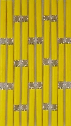 Je ontvangt één zak met hulzen, één zak met verbindingshaakjes, een zakje met ophanghaakjes, een rail en een handleiding. Rijg de hulzen aan elkaar tot lange strengen zoals in de handleiding wordt beschreven. Het aan elkaar rijgen van de hulsjes is niet moeilijk, het kost alleen wat tijd! Heb je een ontwerp met patroon gekozen? Ook dan staat netjes in de handleiding beschreven hoe je zelf eenvoudig dit patroon in het vliegengordijn kunt verwerken.