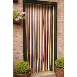 Vrolijk vliegengordijn met plastic strengen. Voordelig, functioneel en bovendien zeer eenvoudig te monteren.